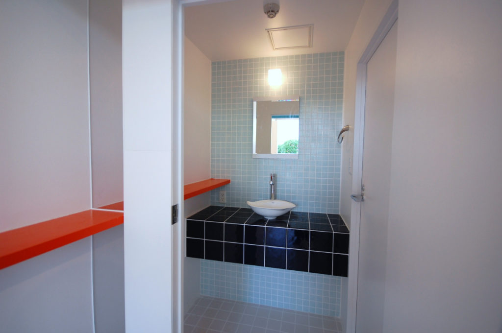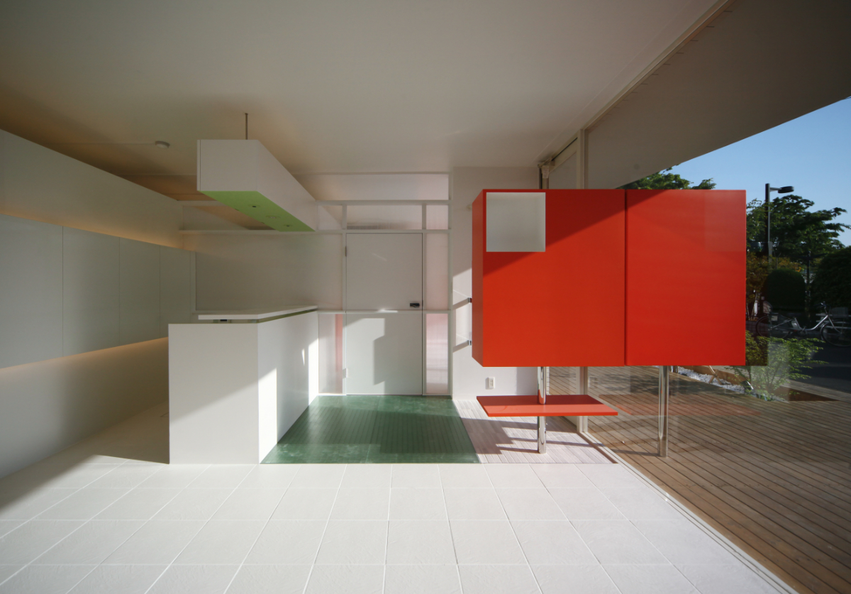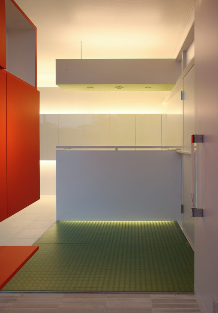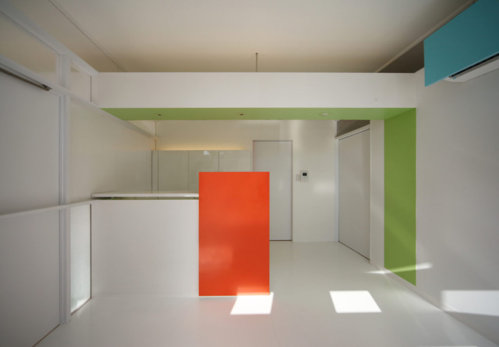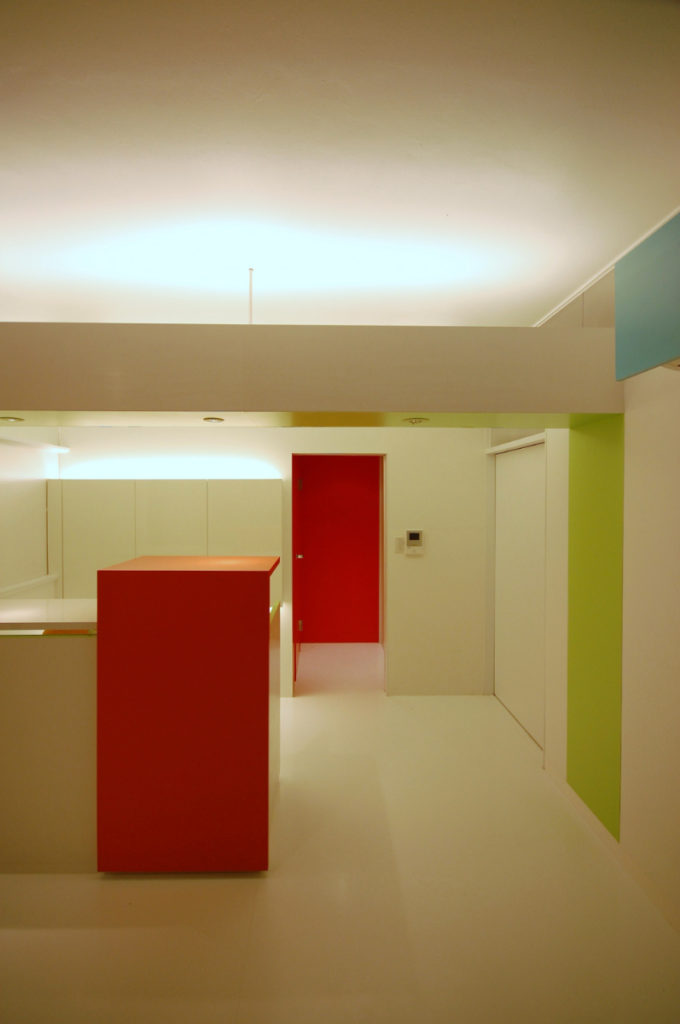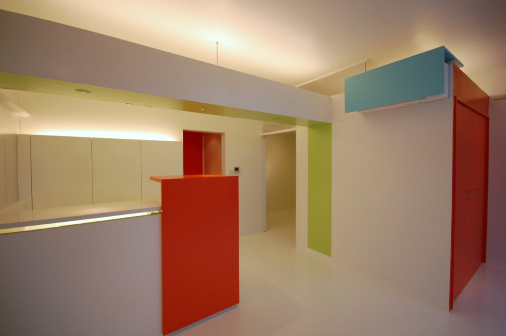 色彩計画は白を基調にして、人が移動する事で色が表れるよう、人・家具・物が入り調度よいバランスになるよう色をポイントに配色し、空間にリズムを与えています。