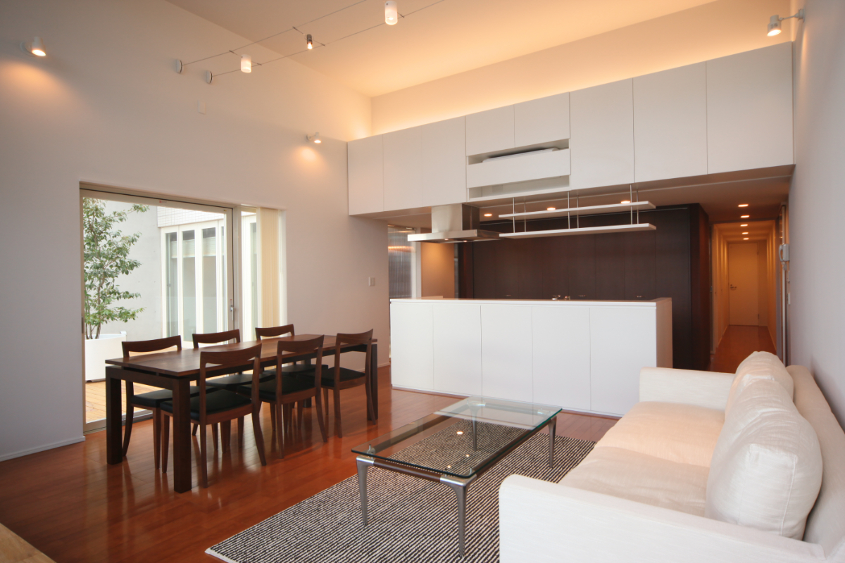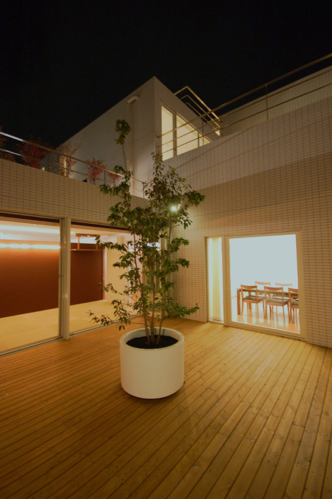 大きな中庭を介して空間が繋がり、開放的でありながら囲まれた安堵感を内包した空間となっています。