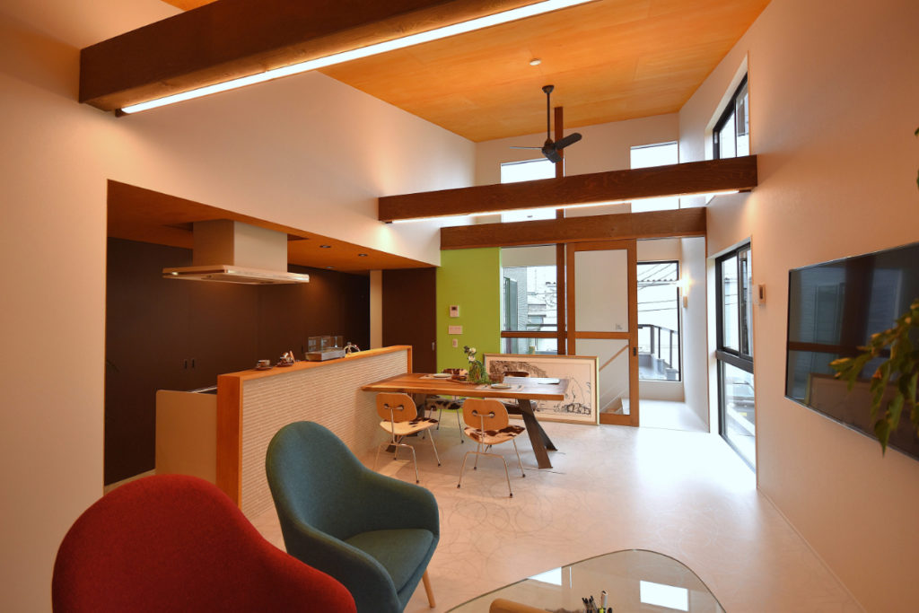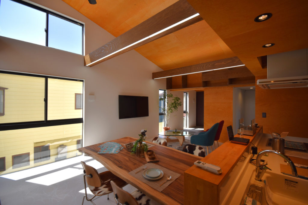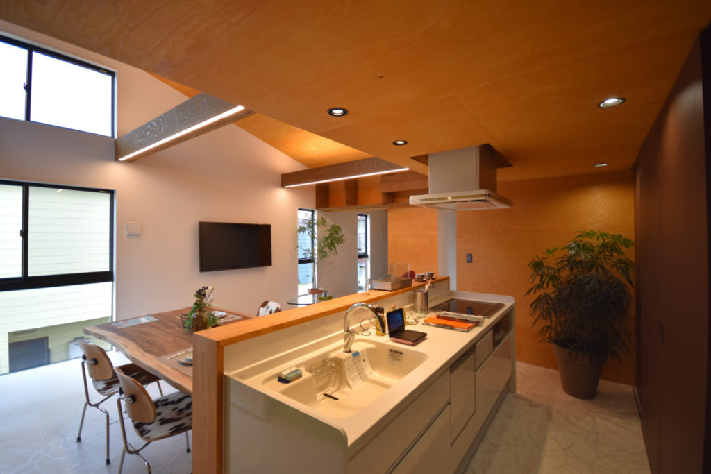敷地を最大限に活かし、各方向に多様な居場所と奥行きを設け、住まいに広がりと変化を与えた。プライバシーを守りながらも、開放感と日射を確保し、光の取り込み方をコントロールした心地よい空間を目指した。
