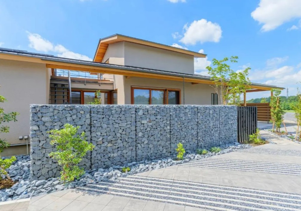 川沿いの開放的な敷地に風景と調和するように静かに佇む住まい。